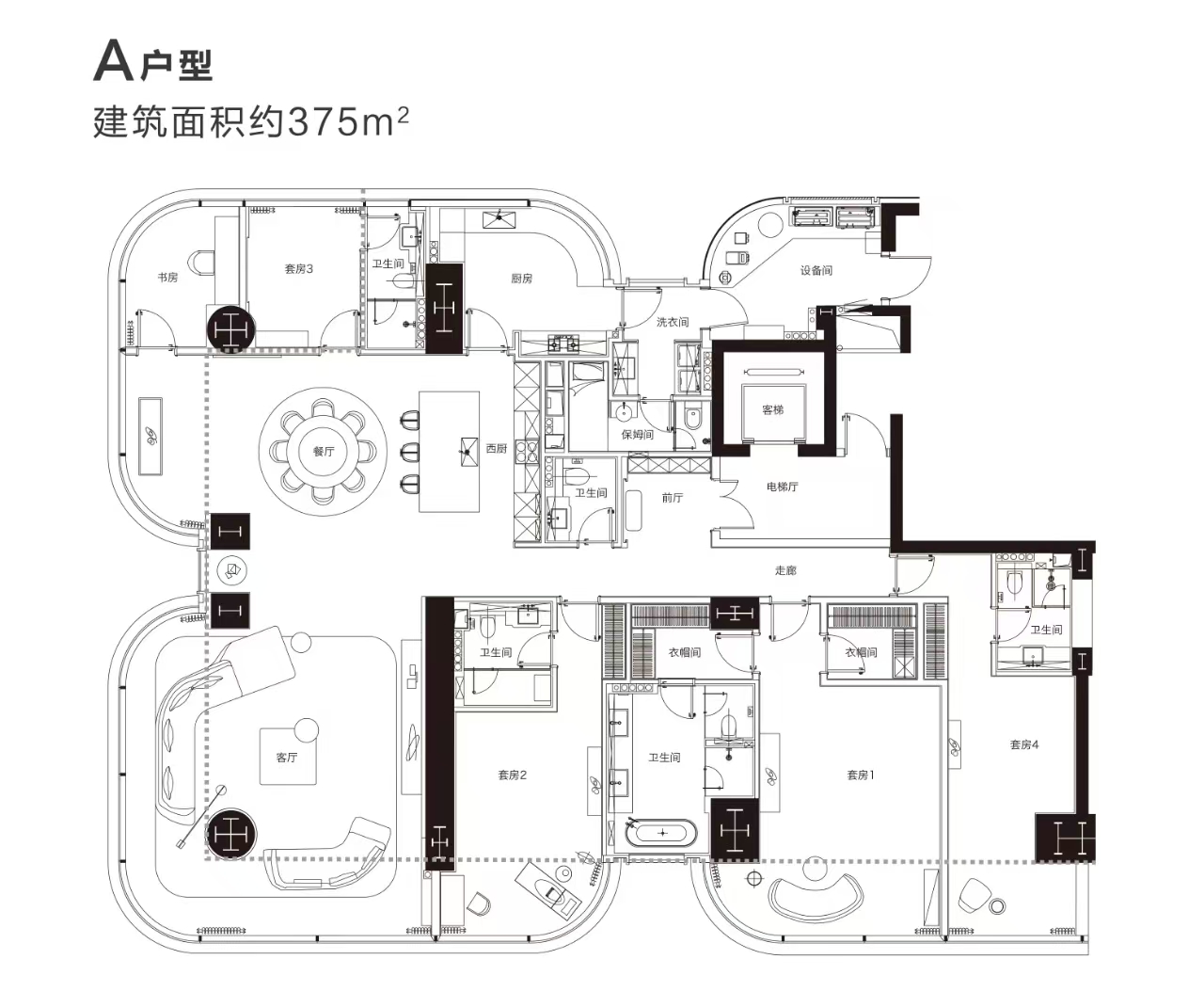 商务大平层 375㎡ 约1875万 (50000元/m²)
