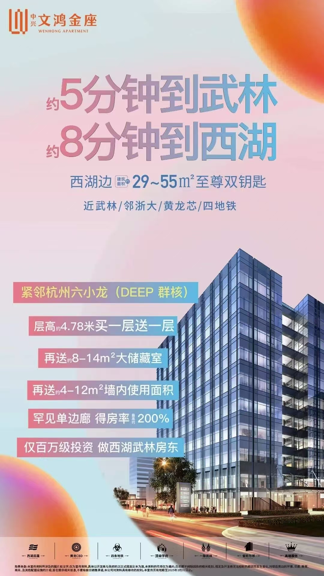 【文鸿金座售楼处】西湖区,黄龙板块,稀缺在售新房公寓,双地铁,4.78米层高,实景准现房,在售建面约29-55㎡,参考单价47000元/m²起,更多详情欢迎来电售楼处,免费接送看房。