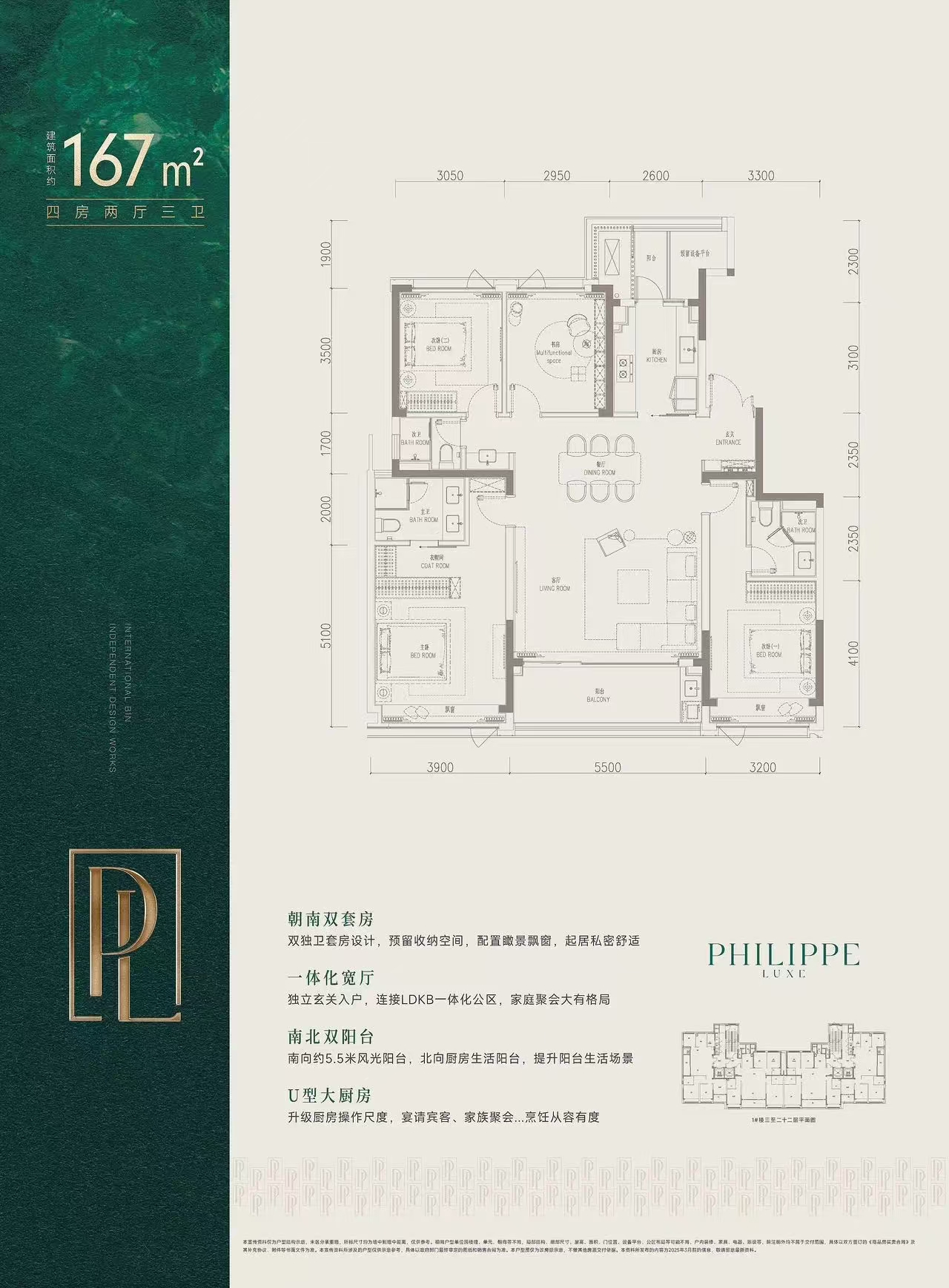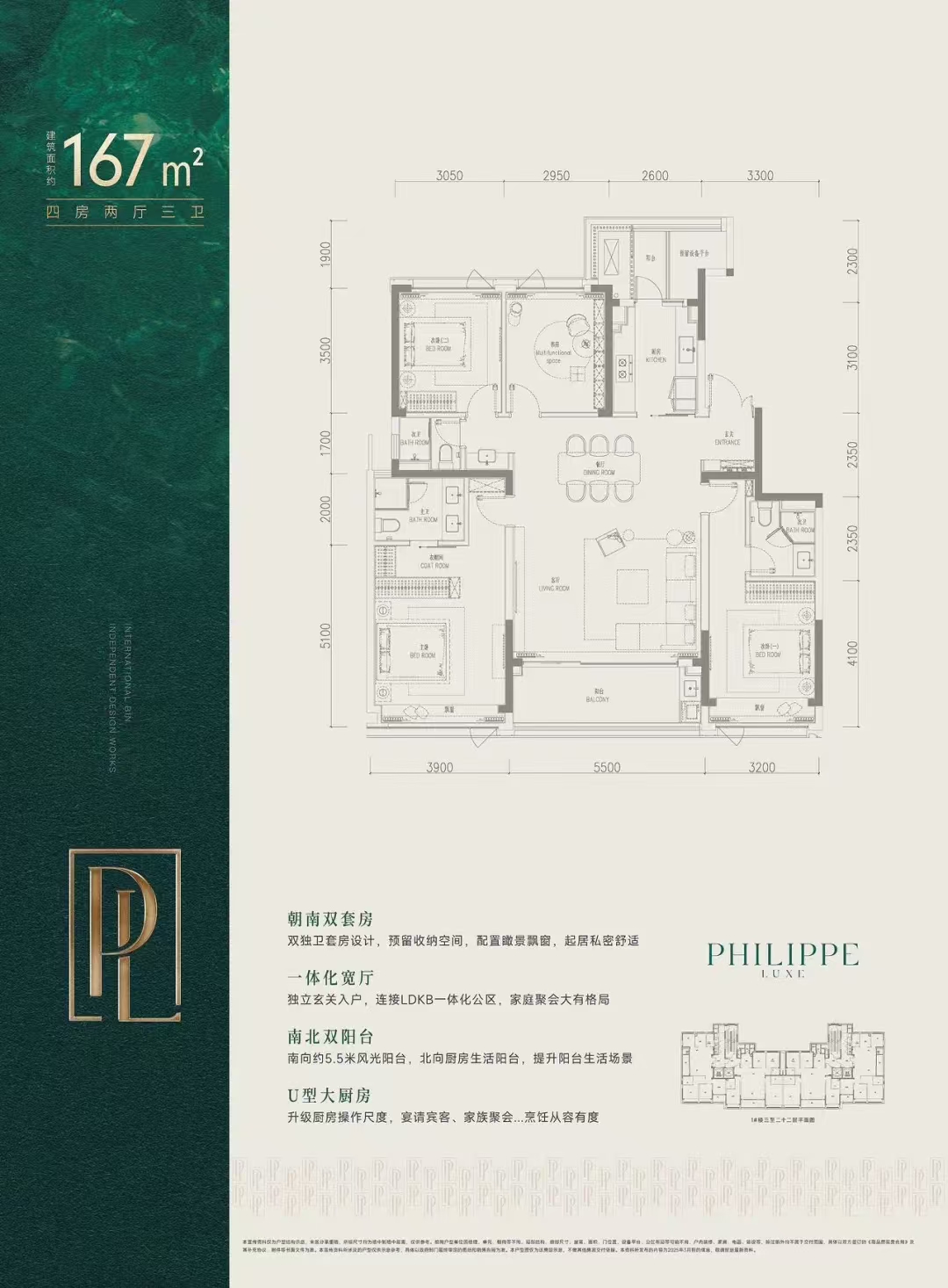 建面: 167.00㎡ 4室2厅3卫