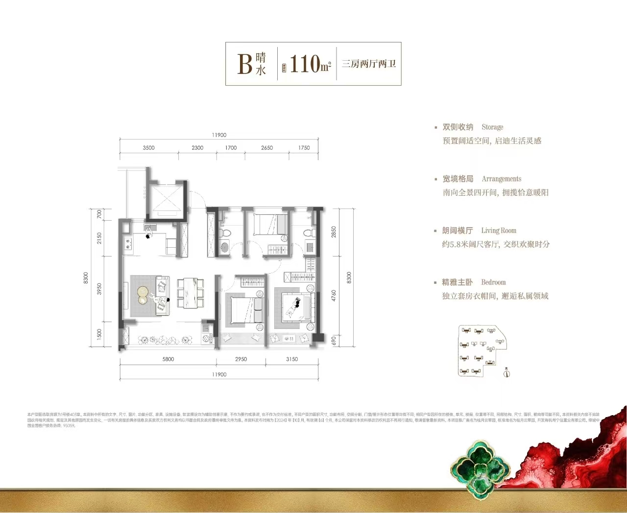 建面: 110.00㎡ 3室2厅2卫