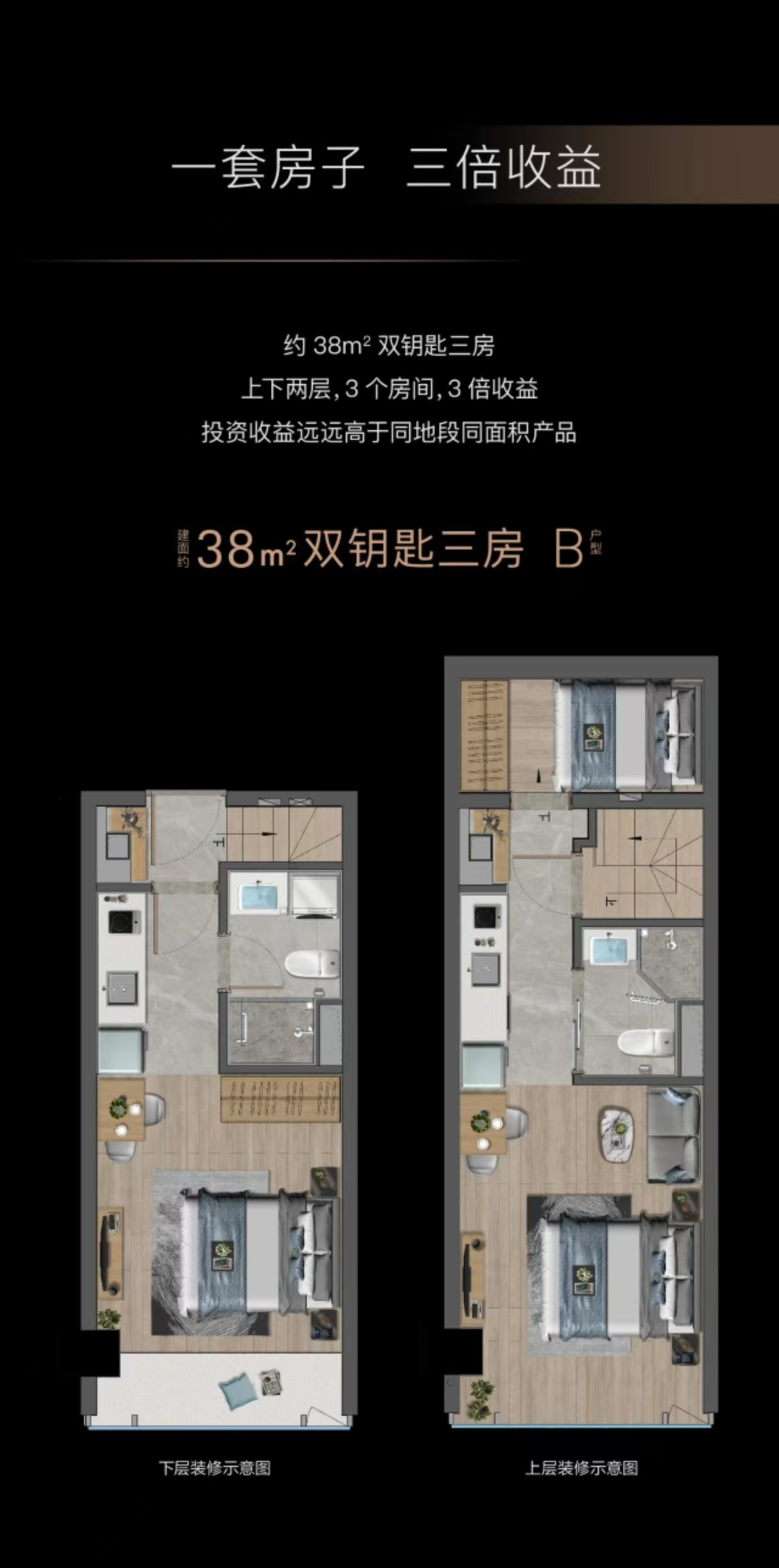 建面: 38.00㎡ 3室0厅2卫