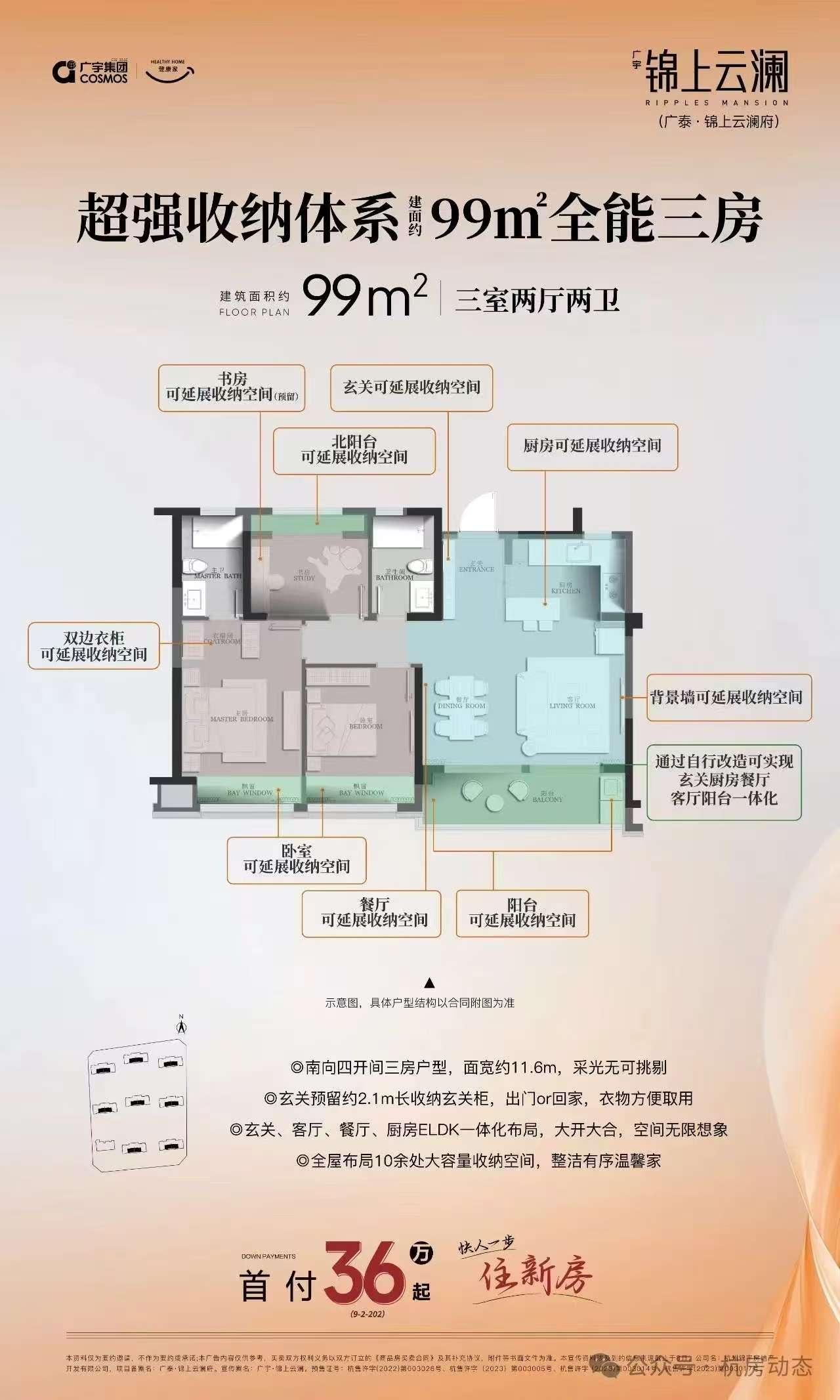 广宇锦上云澜,钱塘区,建面区间99-160㎡ ,总价约259-477万/套