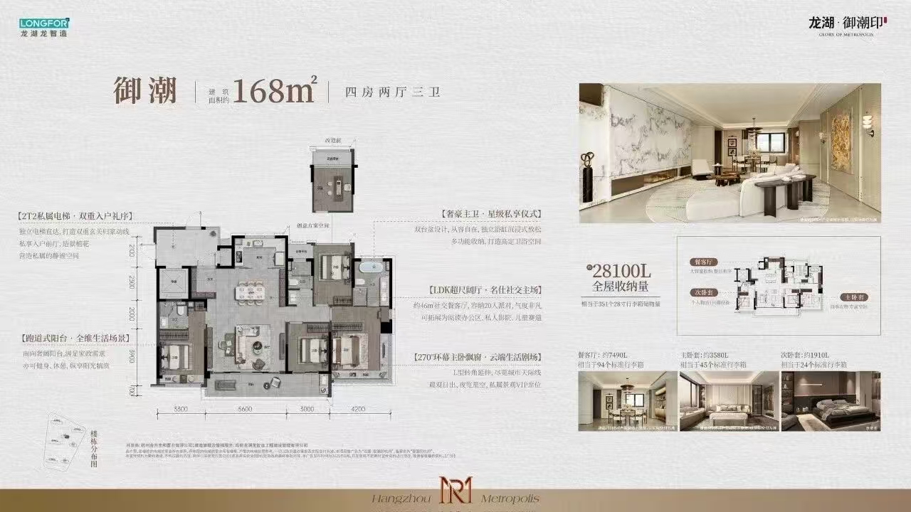 龙湖.御潮印,萧山区,项目位于宁围板块,建面区间98-168㎡,总价约262-482万/套