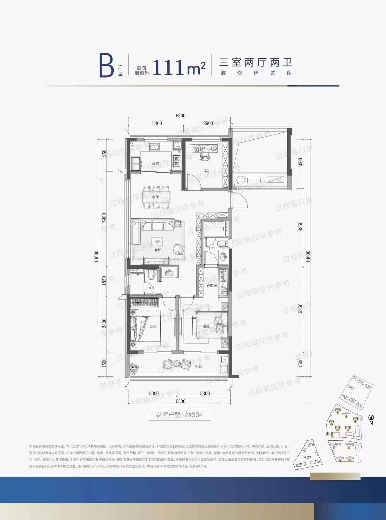 建面: 111.00㎡ 3室2厅2卫 均价:17000元/㎡