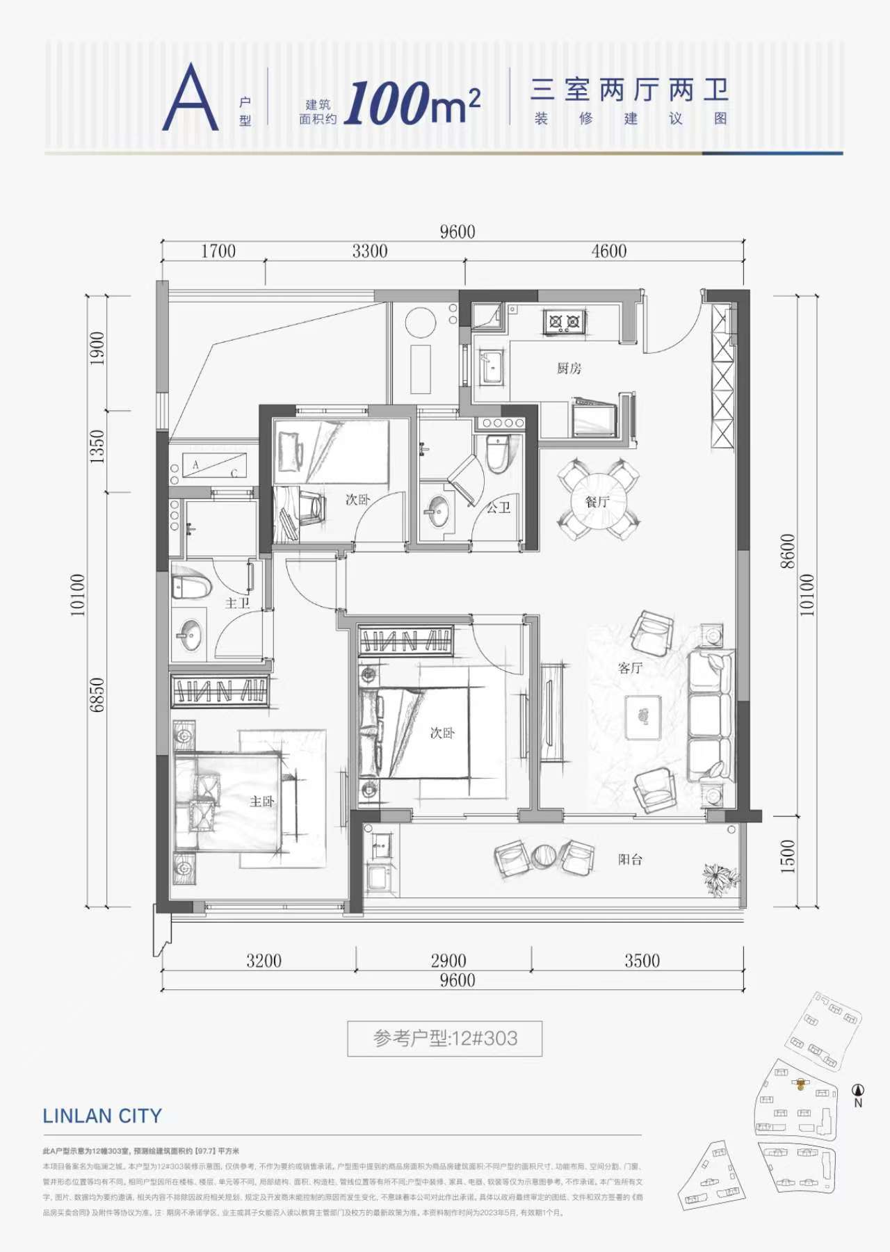 建面: 98.00㎡ 3室2厅2卫 均价:17000元/㎡