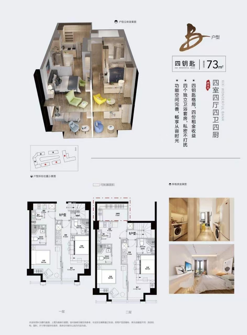 四钥匙公寓 73㎡ 约198万(27000元/m²)