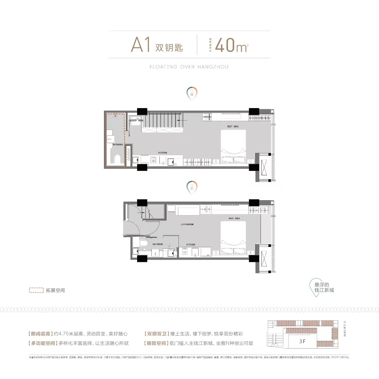 双钥匙公寓 40㎡ 约180万(45000元/m²)