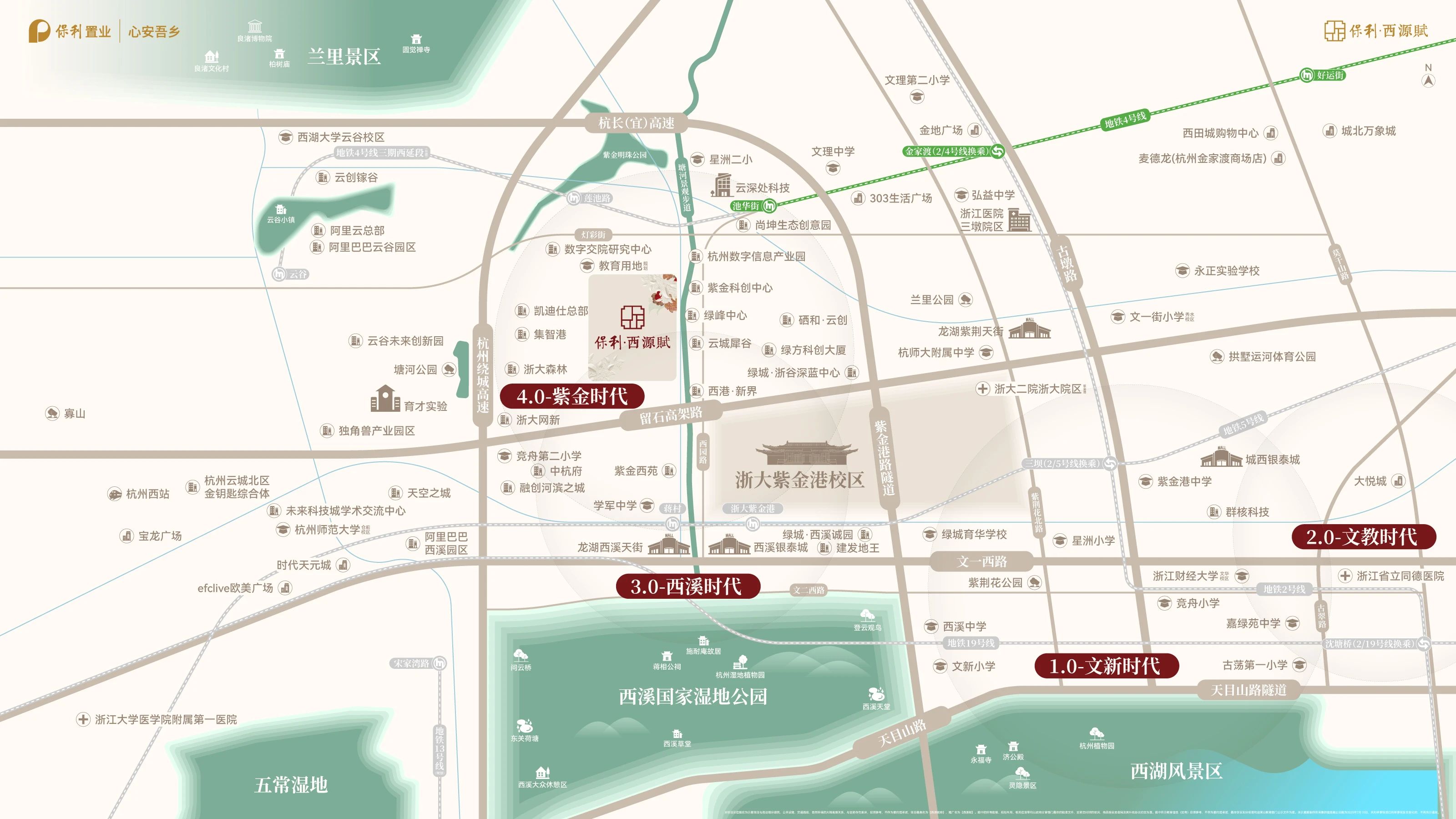 【保利・西源赋售楼处】楼盘位于西湖区三墩蒋村,西湖区一线塘河河畔 ,在售建⾯约125-139-168㎡住宅,四面铝板+奢阔门头,参考单价37000元/㎡起,楼盘距离地铁口约660m,更多楼盘信息欢迎垂询!