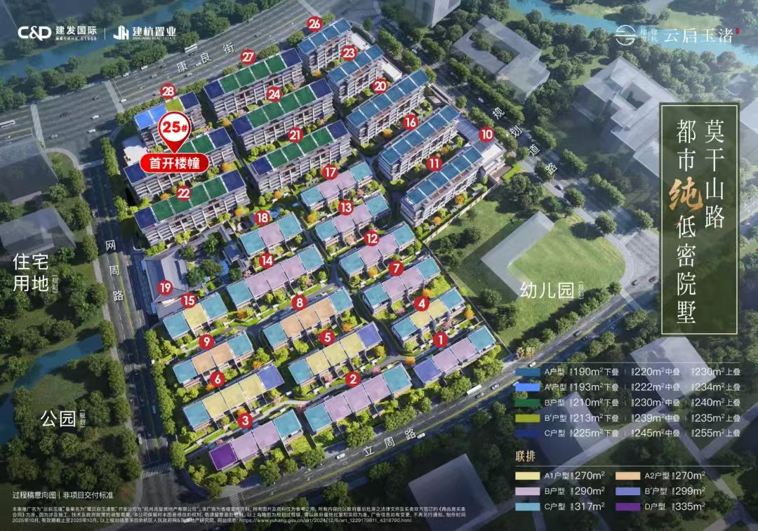 云启玉渚,首开均价约3.3万/㎡,叠墅总价约580-1000万,排屋约1200-1800万。