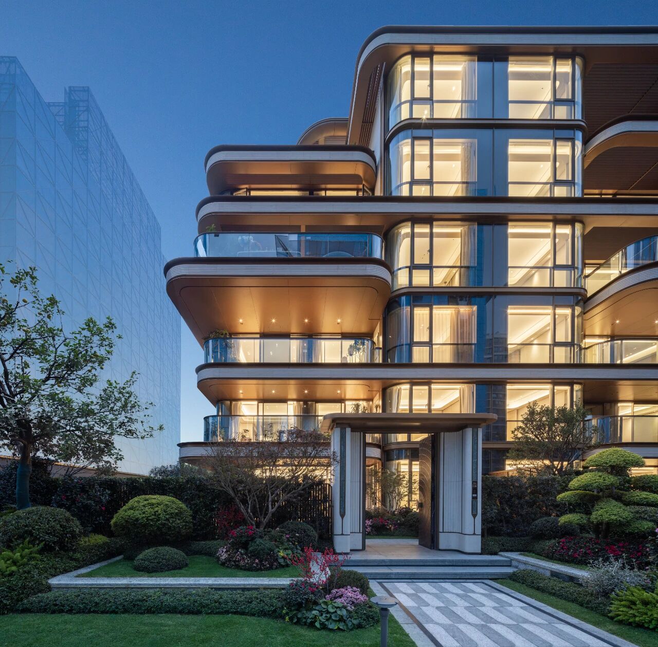 双大师团队操刀,以宝诗龙孔雀羽为灵感造园,铝板干挂立面配曲面设计,筑就城市美学封面。