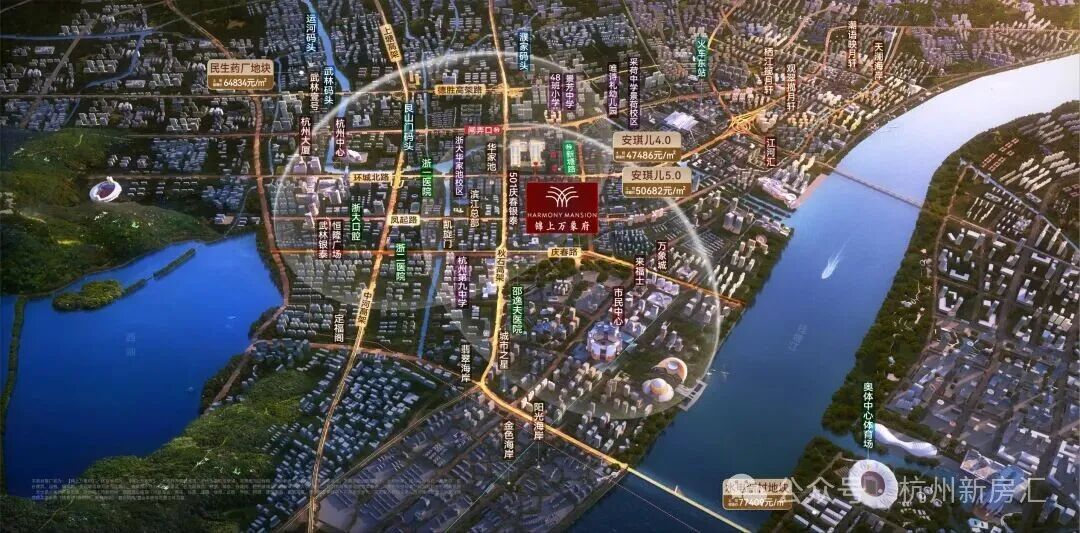 项目踞主城安琪儿核心,毗邻京杭大运河,衔接武林芯与江河汇,尽揽运河盛景、繁华与千年人文。