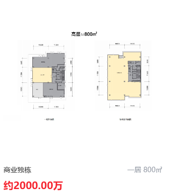 商业独栋 800㎡ 约2000万(25000元/m²)