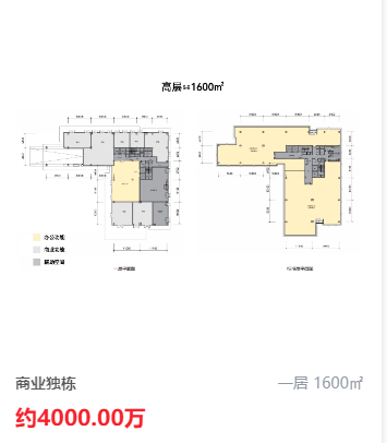 商业独栋 1600㎡ 约4000万(25000元/m²)
