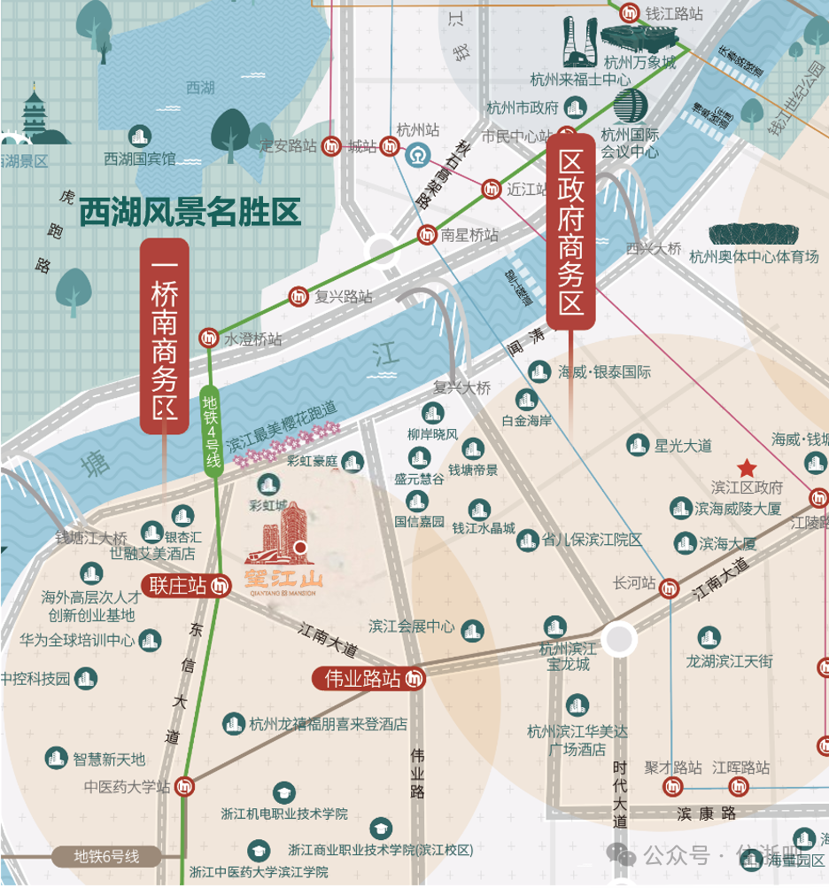 【海威望江山售楼处】楼盘位于滨江西大门一桥南核“芯”板块,双地铁,自带约2.6万方商业综合体,商业成熟,周边医疗配套齐全,在售建面约约1100㎡天际平墅,参考单价约30000元/㎡起,更多楼盘信息欢迎垂询!